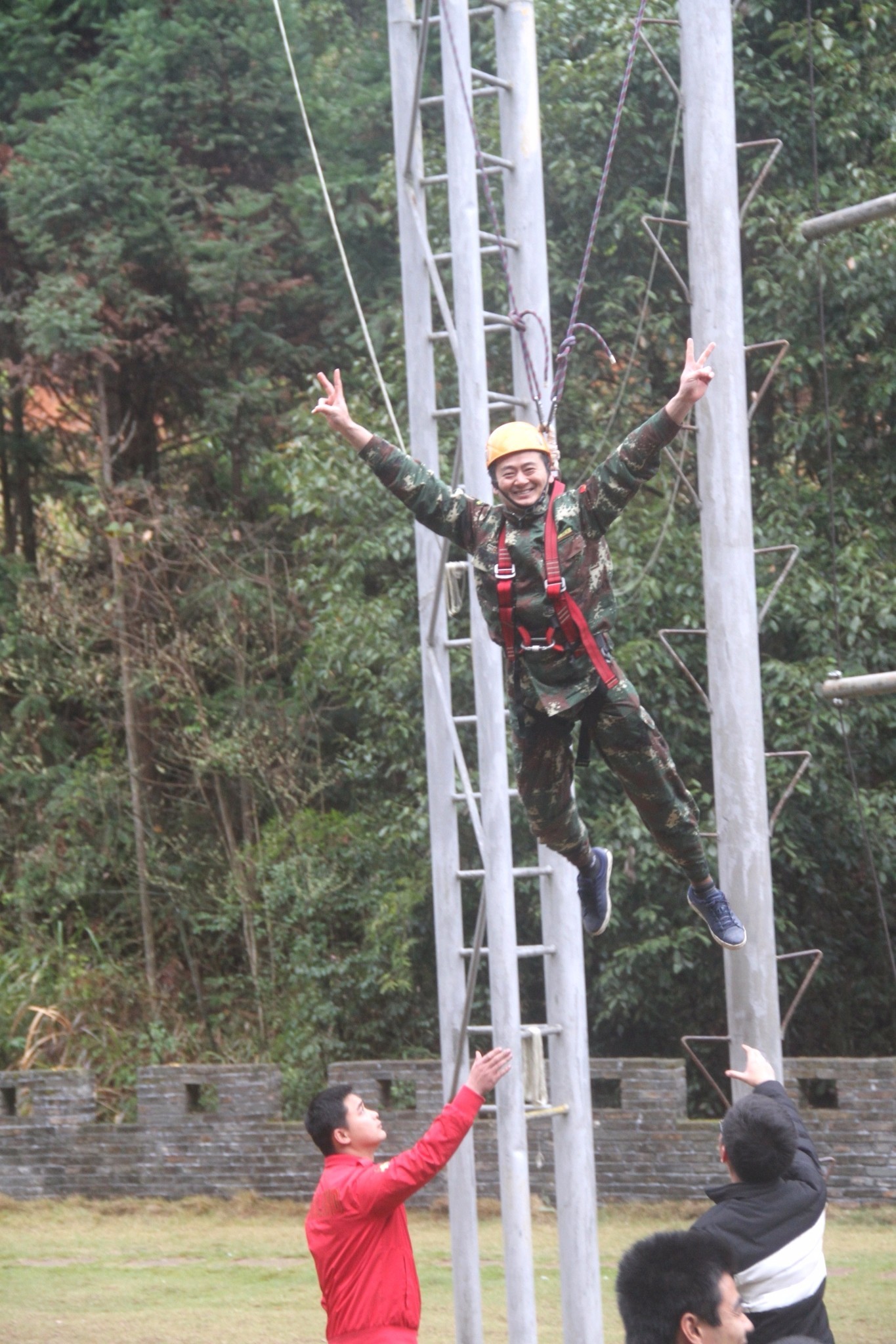 第一天團隊統(tǒng)一著裝迷彩服,進行團隊組建并建立統(tǒng)一的團隊目標。參加心情撲克牌、高空抓桿、盜夢空間、七巧板等項目。
