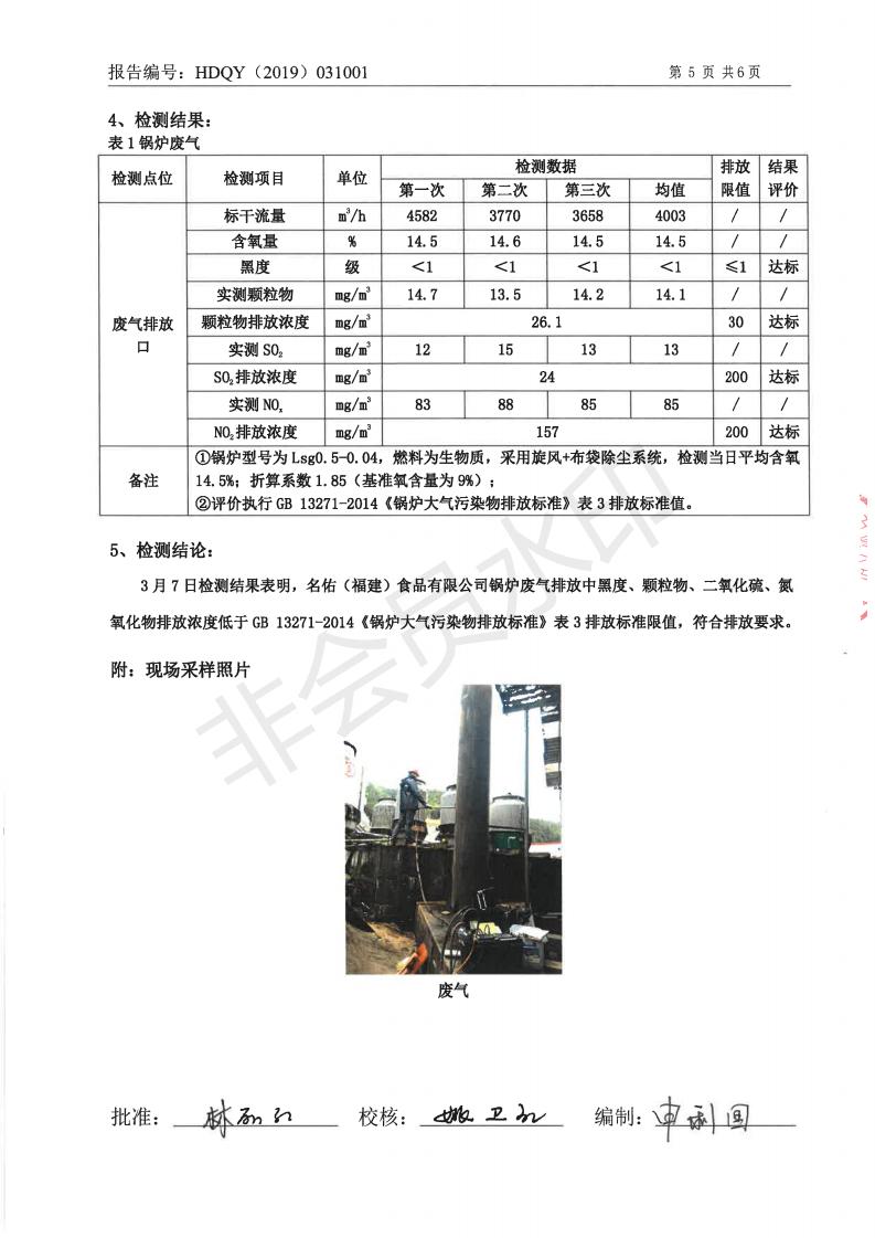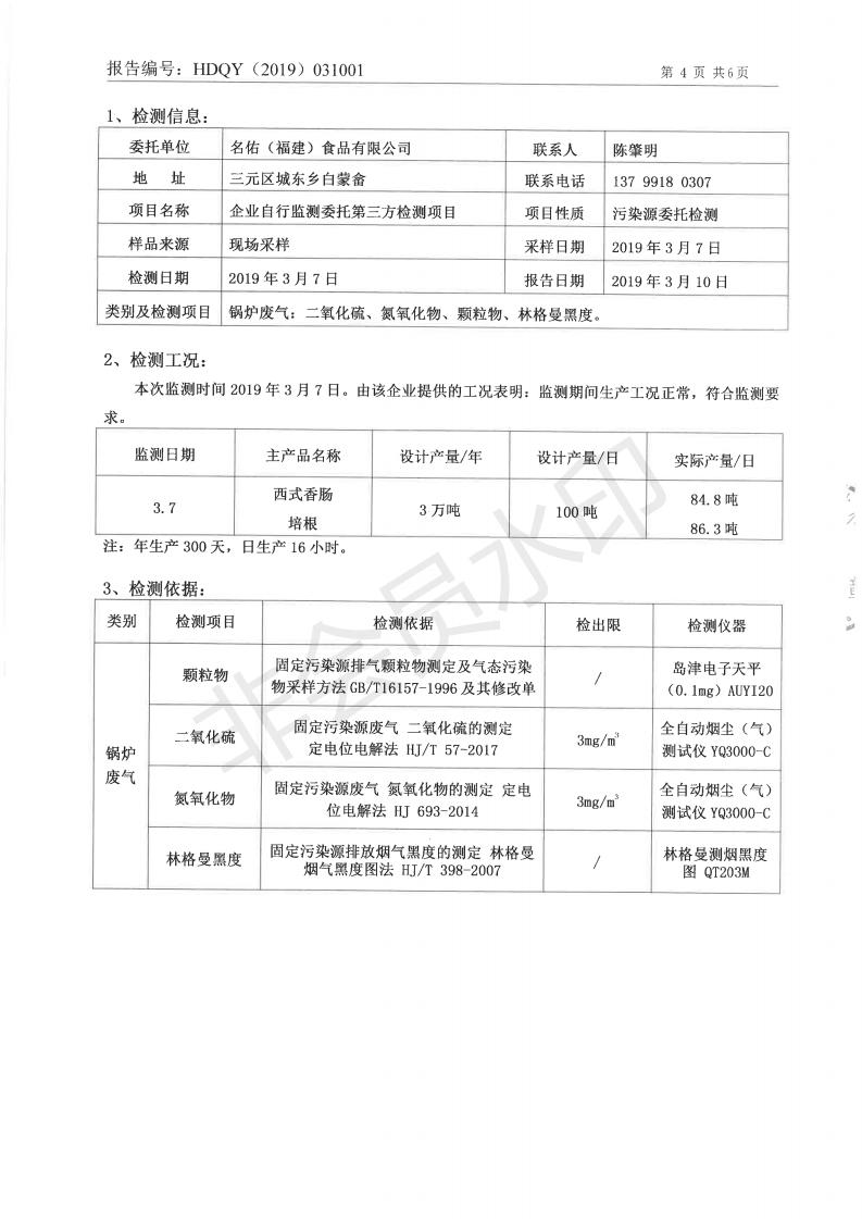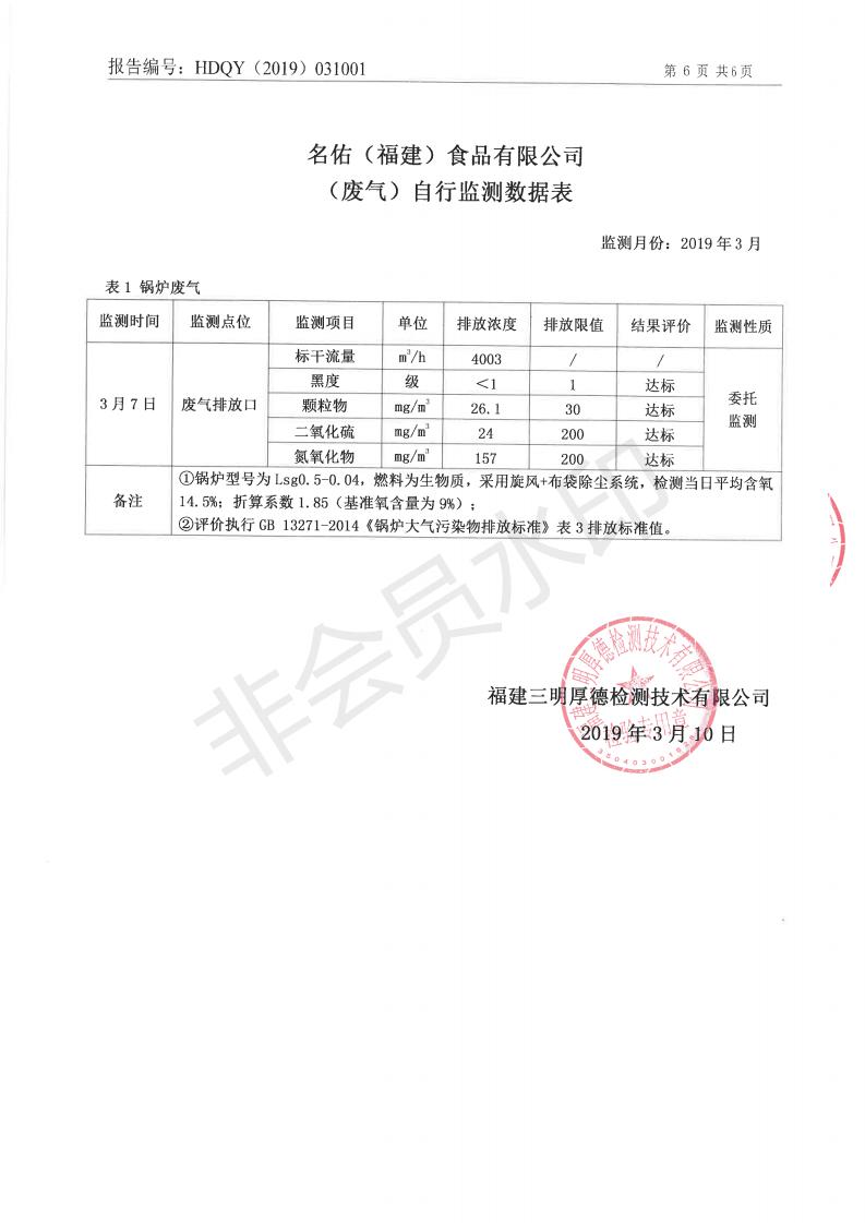 名佑(福建)食品有限公司2019年度3月環(huán)境自行監(jiān)測(cè)信息